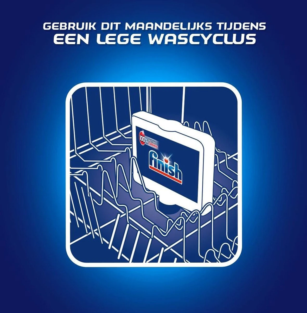 - 100% betere reiniging van jouw machine ten opzichte van wanneer je alleen Finish vaatwasmiddel gebruikt