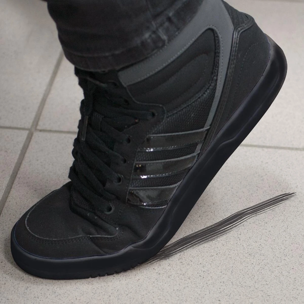 - Trekt of kruipt volledig door of onder de sticker