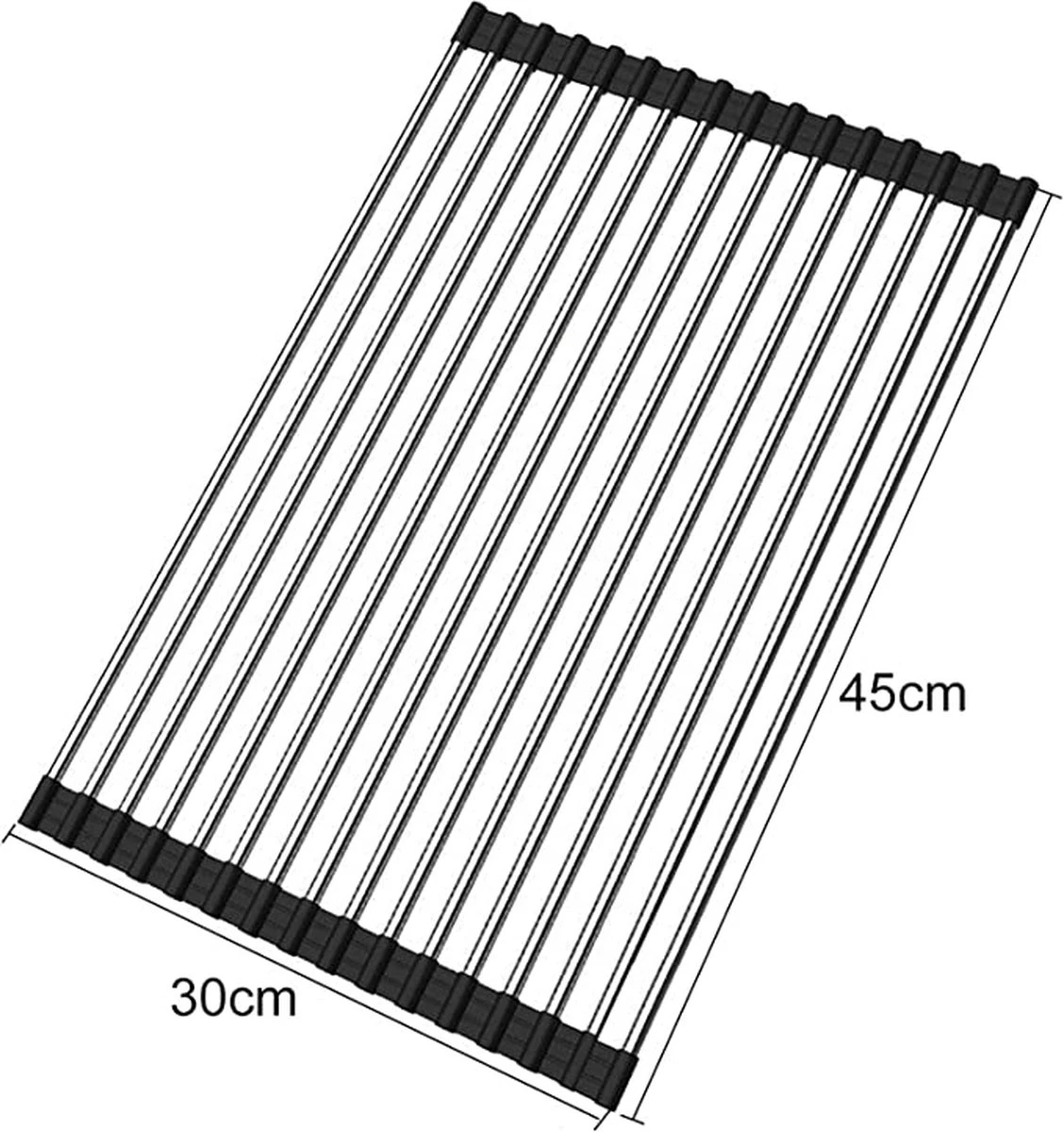 Het probleem met de meeste bordenrekken is dat ze ruimte in beslag nemen. Ons oprolbare afdruiprek heeft een flexibel ontwerp, het rolt op als een gootsteenmat en neemt minimale ruimte in beslag. Dit maakt hem ideaal voor elke keuken. Gemaakt van roestvrij staal en volledig bedekt met siliconen van voedingskwaliteit, waardoor het rek volledig slipvrij blijft. Het is hittebestendig tot 205 graden.