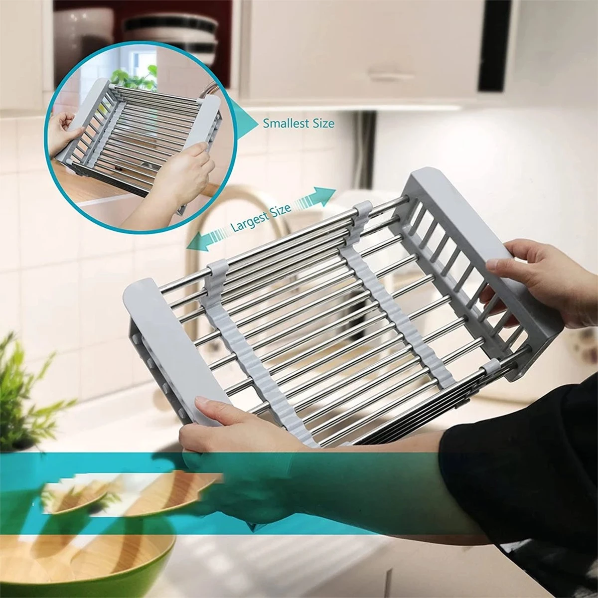 Gebruik hem als afdruiprek ,opbergmand ,zeef,vergiet of gewoon als gootsteen organizer.