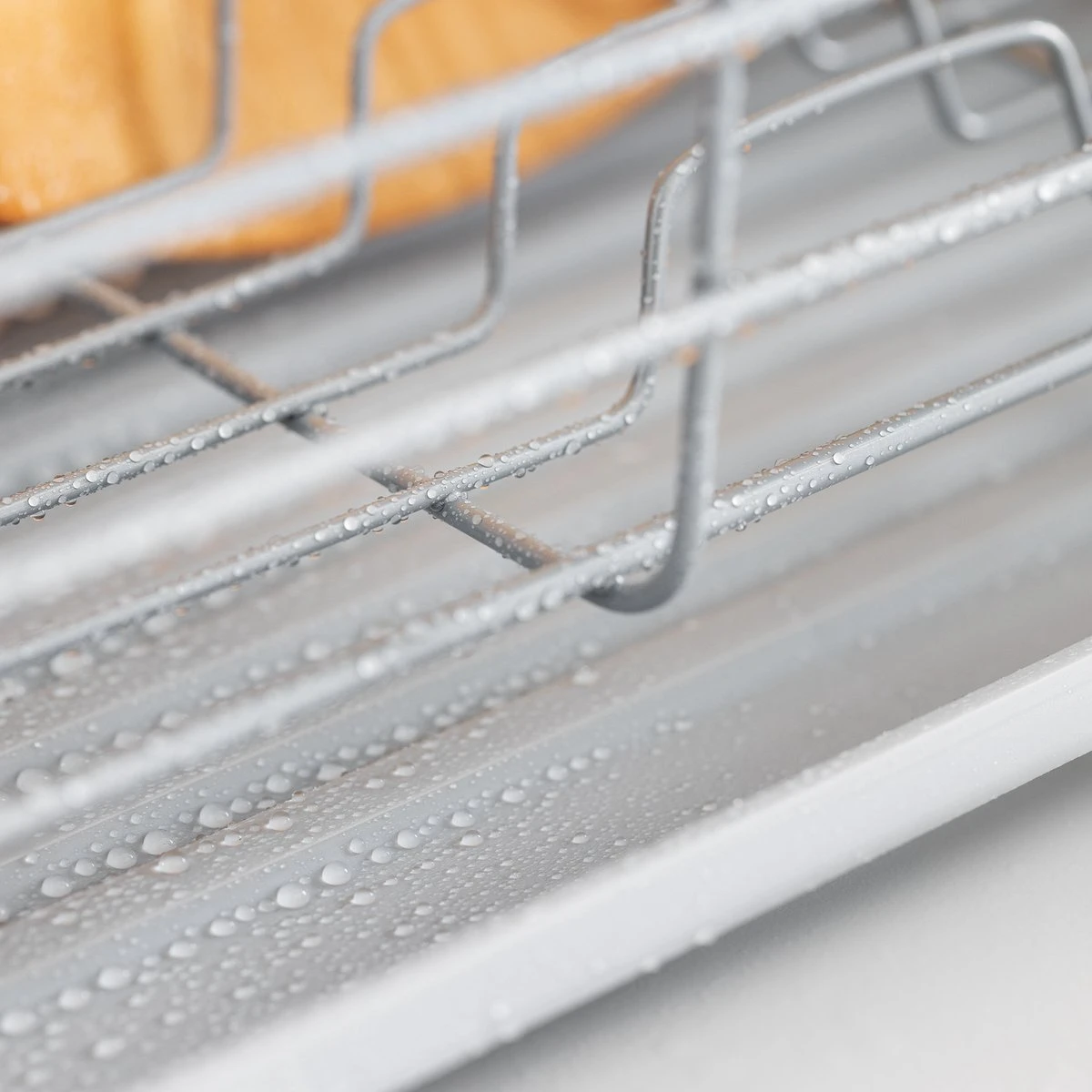- Afdrogen wordt een feestje. Plaats de natte afwas in het rek en wacht geduldig af tot het vanzelf droogt. Het afdruiprek heeft een losse lekbak waar al het vocht in druipt.